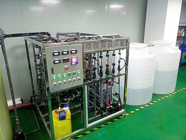2、预处理→反渗透→中间水箱→水泵→EDI装置→纯化水箱→纯水泵→紫外线杀菌器→抛光混床→0.2或0.5μm精密过滤器→用水对象(≥18MΩ.CM)(最新工艺)。